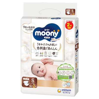 Tã/Bỉm dán organic siêu cao cấp Moony Natural Newborn NB < 5kg, 62+4 miếng