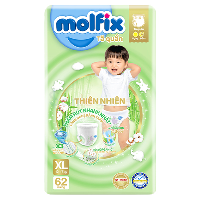 Tã quần thiên nhiên Molfix Ultra XL (12kg - 17kg) Gói 62 miếng