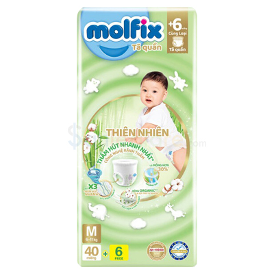 Tã/bỉm quần Molfix Thiên nhiên Jumbo M (6kg - 11kg) - Gói 40+6 miếng