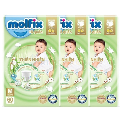 Combo 3 Tã/bỉm quần MOLFIX Thiên nhiên Super Jumbo M60/L52/XL42/XXL38